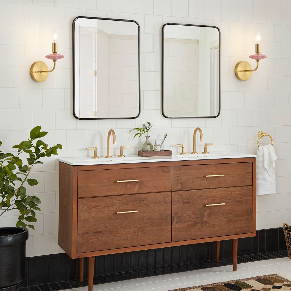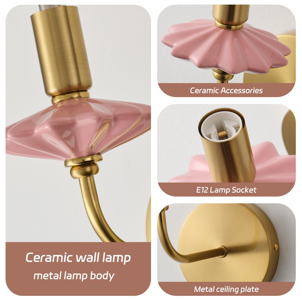 Digawe saka keramik pink alus lan hardware multi-lapisan emas-lapisan, sconce tembok jedhing iki nggabungke wangun lilin klasik karo gaya kemewahan cahya modern, masterpiece saka Strong Lighting nggabungaken keramik lan bahan logam. Bagean keramik diproses kanthi glazing suhu dhuwur, kanthi sentuhan lancar lan tahan luntur, dene hardware sing dilapisi emas duwe resistensi oksidasi sing apik, cocog kanggo panggunaan jangka panjang sanajan ing lingkungan jedhing sing lembab ing wilayah pesisir. Dilengkapi soket E12, kompatibel karo bohlam tradisional lan LED, ndhukung daya maksimal 40W saben lampu. Cahya putih sing anget lan adhem bisa diowahi kanthi bebas kanggo nggawe atmosfer sing beda-beda, kanthi ukuran L200xW110xH210 MM, proporsi sing kompak cocog karo macem-macem tembok njero ruangan.