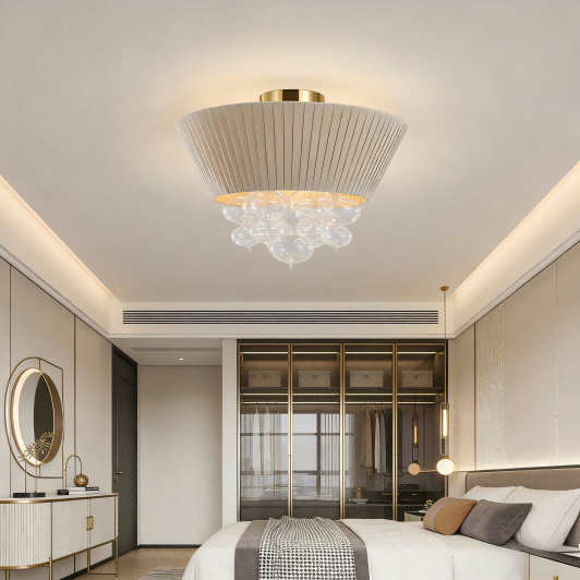Sajrone layanan jangka panjang ing pasar Eropa lan Amerika, Strong Lighting tansah nggatekake kabutuhan estetika lan skenario panggunaan pangguna pungkasan. Kap lampu kain saka lampu langit-langit iki digawe kanthi teknik tekstur sing dipencet tangan, nggawe tekstur pleated alami lan telung dimensi. Cahya sing dipancarake alus lan disebarake kanthi rata, nggawe lingkungan cahya sing anget lan nyaman. Gelembung kaca sing nggandhol ing ngisor iki diunekake nganggo tangan, saben bentuke rada beda. Nalika dipadhangi, katon kaya manik-manik cahya sing digantung, nyedhiyakake efek cahya lan bayangan sing dinamis lan nengsemake. Apa digunakake ing papan omah minimalis Nordic utawa papan komersial kanthi gaya kemewahan sing entheng, bisa nambah kualitas ruangan kanthi signifikan.